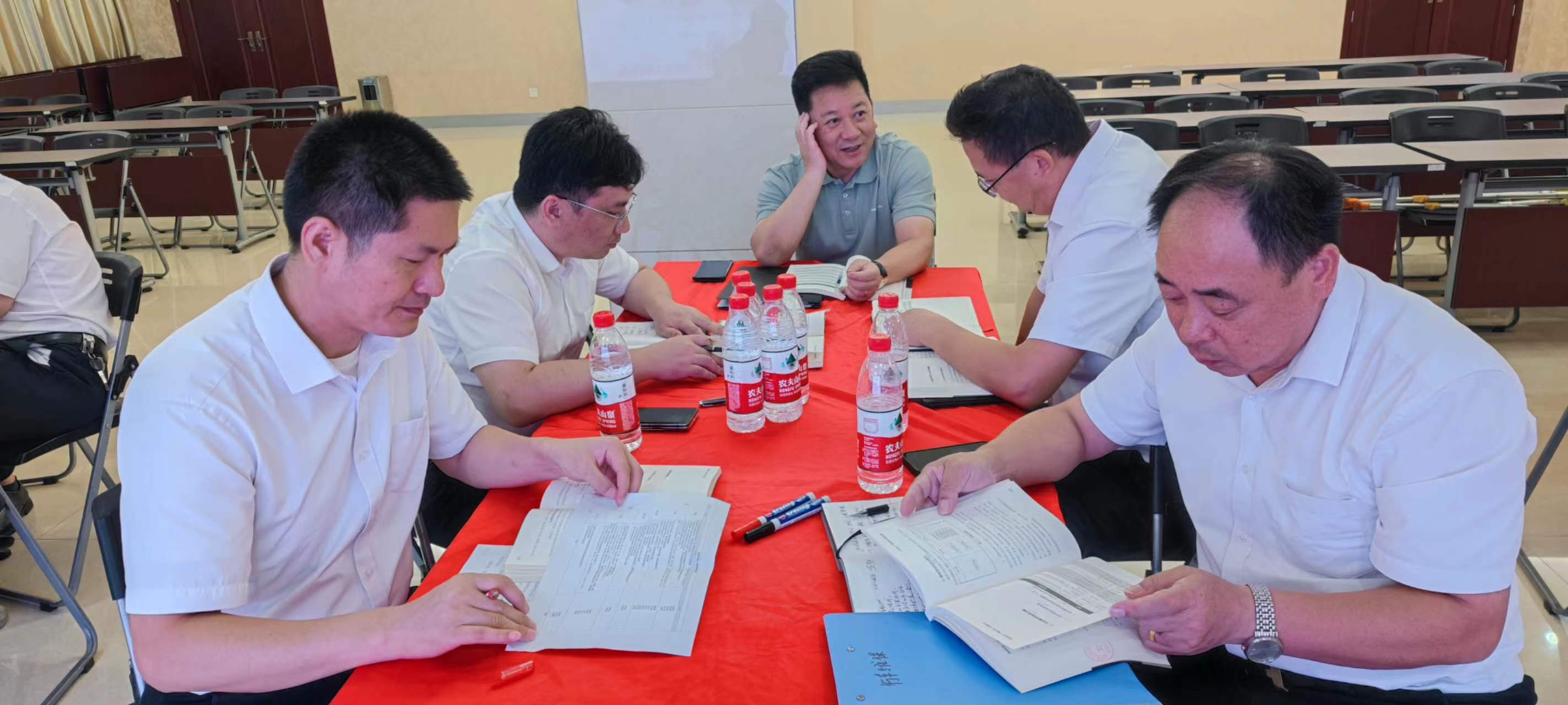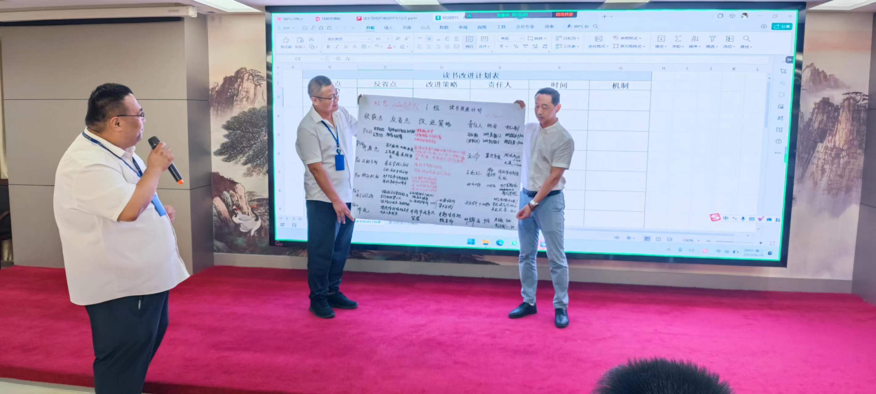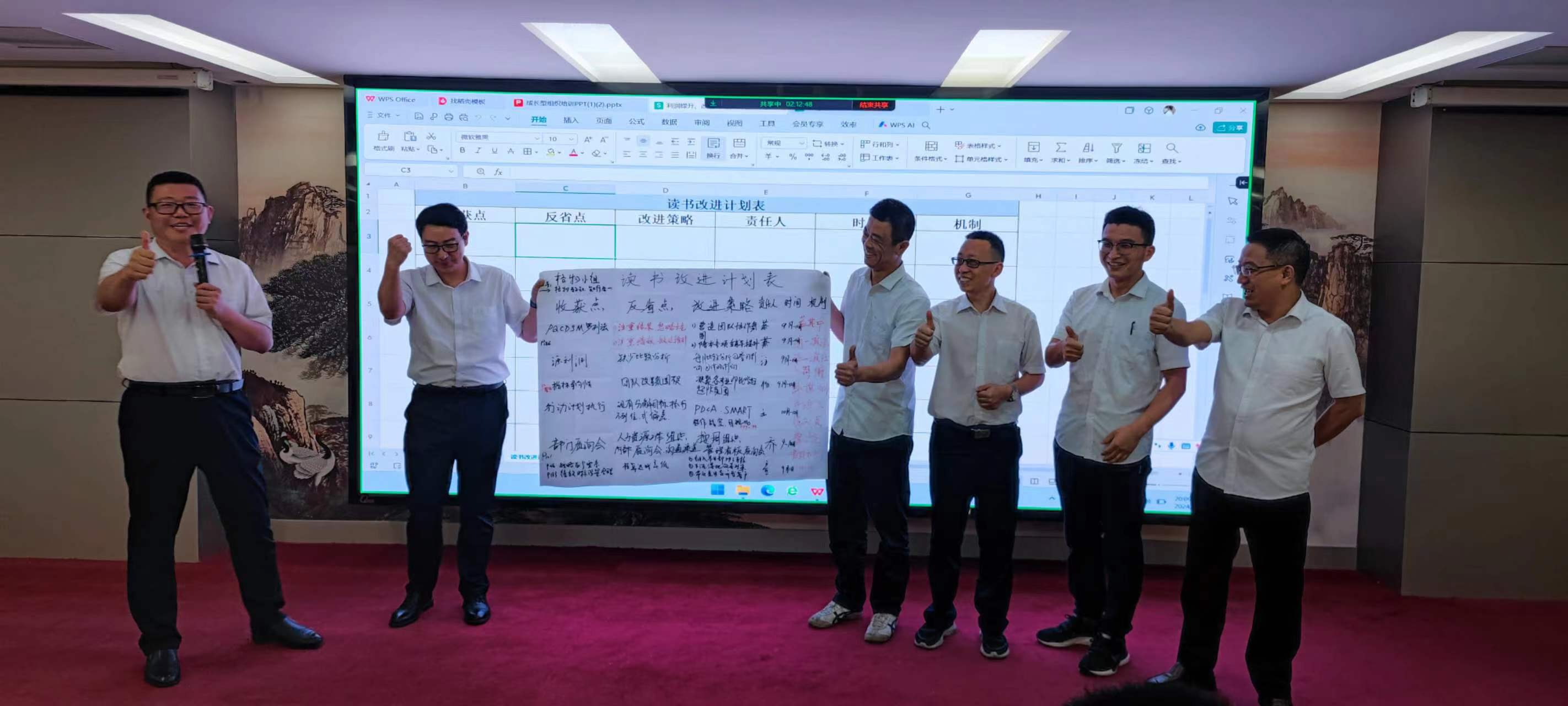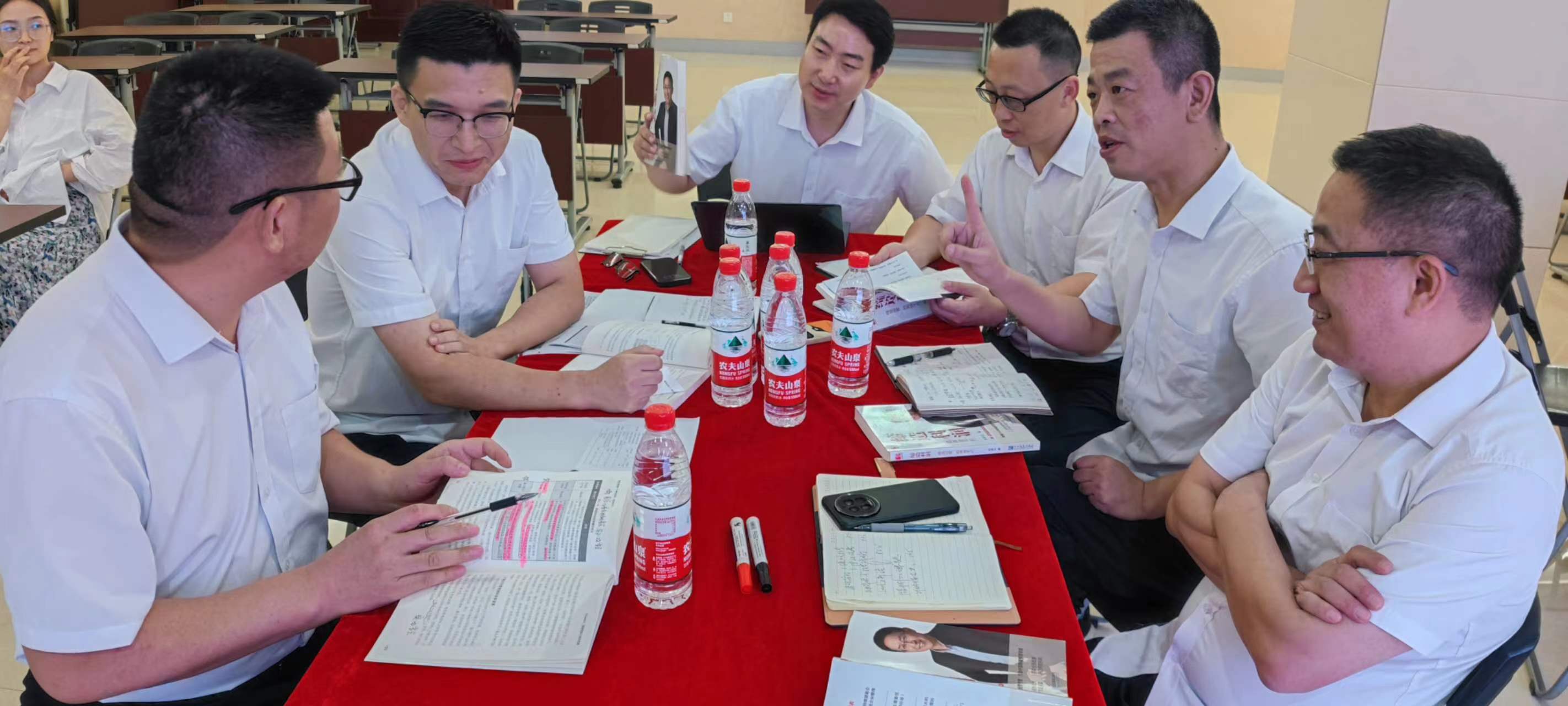 在交流環(huán)節(jié),每個(gè)小組組長(zhǎng)分別上臺(tái)發(fā)表感言,所思、所想、所悟,并聯(lián)系實(shí)際工作中的不足與欠缺之處,以及有待解決或尚未發(fā)現(xiàn)的問題,大家暢所欲言,無不盡抒。每個(gè)小組根據(jù)收獲點(diǎn)、反省點(diǎn)、改進(jìn)策略、責(zé)任人、時(shí)間、機(jī)制相關(guān)內(nèi)容完成了本次學(xué)習(xí)的《讀書改進(jìn)計(jì)劃表》,并上臺(tái)宣讀、講解、公示。